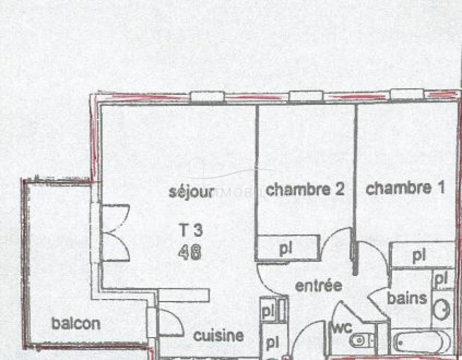 Cet appartement, au 2ème et dernier niveau, sans ascenseur, se compose d'une entrée avec placard, d'un salon / cuisine avec porte fenêtre donnant sur le balcon, 2 chambres avec placard, une salle de bains et des toilettes indépendantes.
