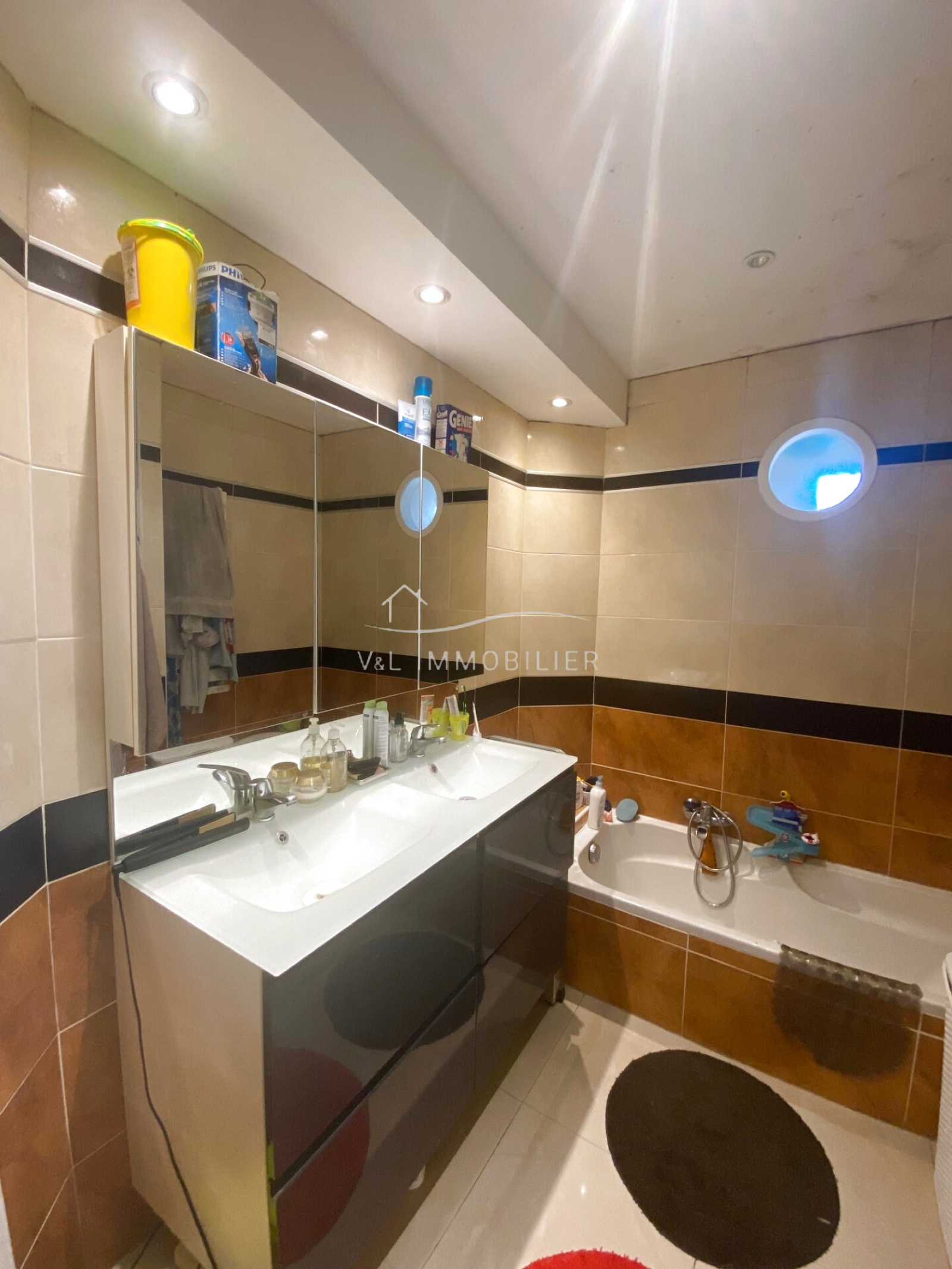 A l'étage, un autre T3 avec lumineuse pièce de vie/cuisine équipée, 2 grandes chambres, une salle de bains complète avec douche et baignoire, des wc indépendants, une buanderie et une cave. À rafraichir.